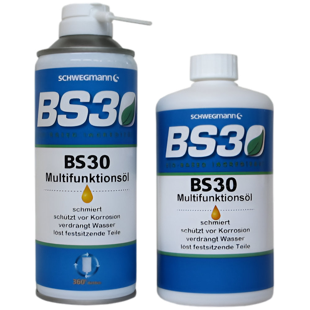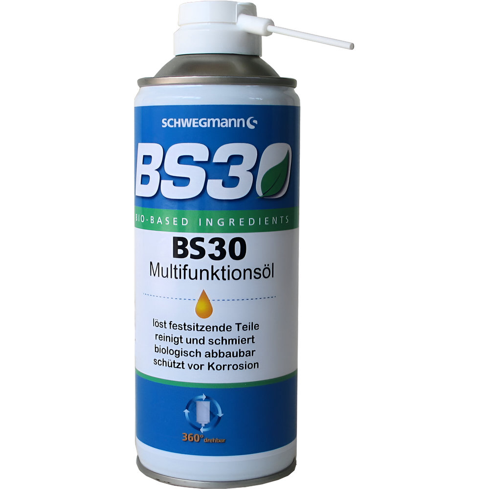 Das Multifunktionsöl BS 30 von Schwegmann ist ein zuverlässiger Helfer für Haushalt, Gewerbe und Industrie. Auf Basis nachhaltiger Rohstoffe produziert und frei von Aromaten, Mineralölen und Silikon ist es besonders umweltfreundlich und nicht schädlich für Kinder und Tiere. BS 30 entspricht allen Anforderungen der Brancheninitiative zur Verminderung der Lösemittel im Offsetdruck. BS 30 ist unkompliziert in der Anwendung. Es wird einfach auf die zu behandelnden Stellen aufgesprüht. Die Aerosoldose funktioniert auch kopfüber, wodurch sich der Einsatz an schwer zugänglichen Bereichen vereinfacht. Festsitzende Teile lösen, bewegliche Verbindungen schmieren, Verschmutzungen und Rost beseitigen – BS 30 erfüllt alle Aufgaben zur vollen Zufriedenheit. Dabei ist es günstiger als marktübliche Alternativen.